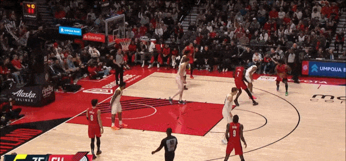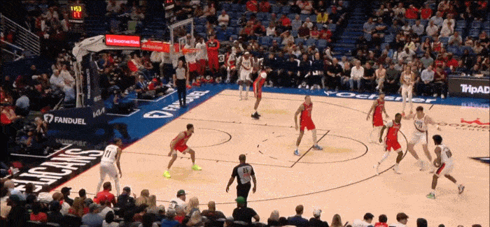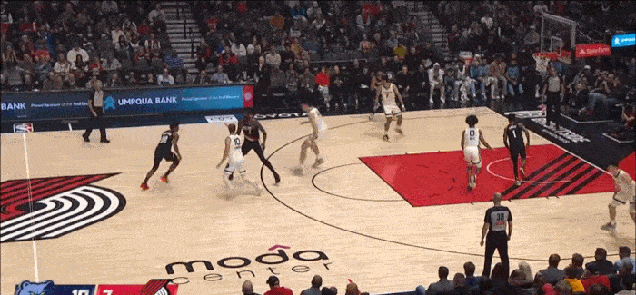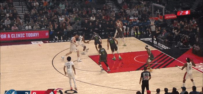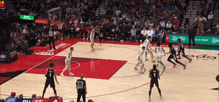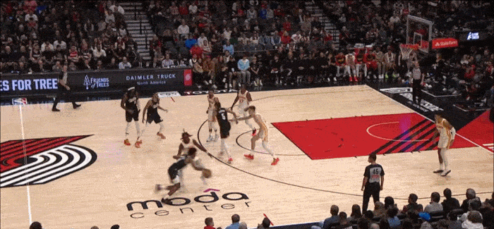 同样是打挡拆,但是没有只是传篮下,阅读防守人后,给格兰特空接