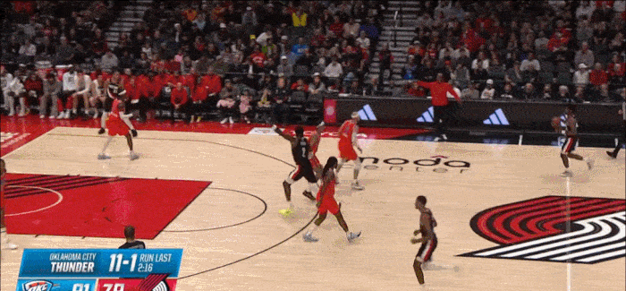当然一个在联盟才打2年的新秀,你不能期待着他能做出老练的传球并有着出色的大局观,但由于他的三分投篮并不是很出色,进攻发起通常需要内线球员来进行挡拆,而杨瀚森正好也可以把进攻多样化,当他在高位时,亨德森又能通过速度无球空切。
