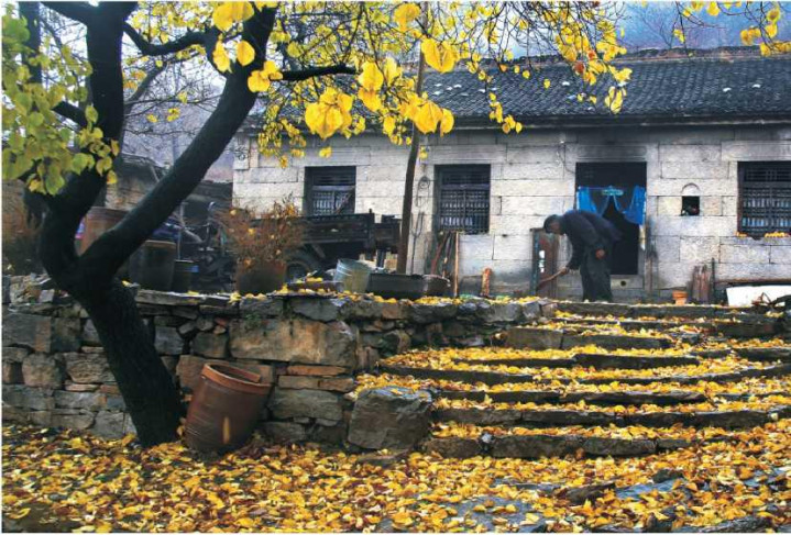 石头房子错落有致,层层梯田,小河蜿蜒,古桥肃穆,古亭伫立,村里还有三口店、中间店和李家大院、贾家大院、关帝庙等古代建筑。当银杏叶落在青石板路上时,世界一下就安静起来!