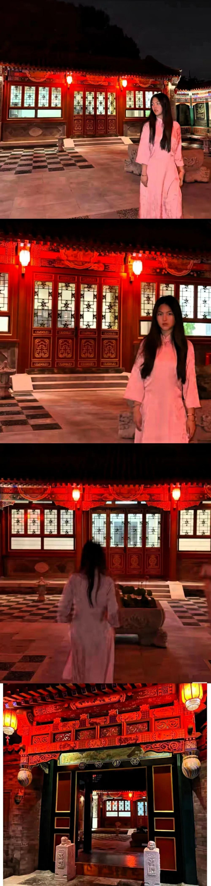 王诗龄发家中北京小院, 大半夜穿旗袍拍摄, 面无表情上演中式恐怖