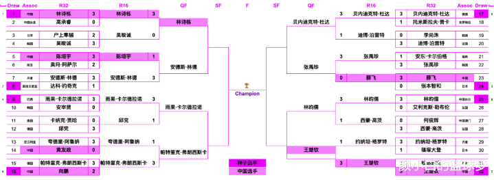 本次澳门冠军赛男单八强:林诗栋、林德、雨果、弗朗西斯卡、杜达、张禹珍、林昀儒、王楚钦;