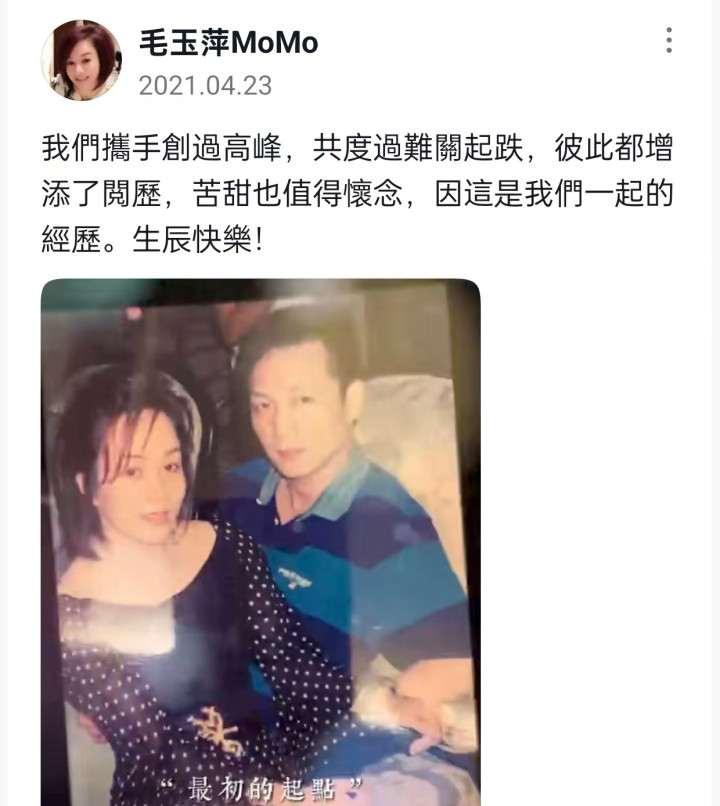 同年4月,毛玉萍又发出多张年轻时照片,为周正毅庆生,不管过往酸甜苦辣,都值得怀念。