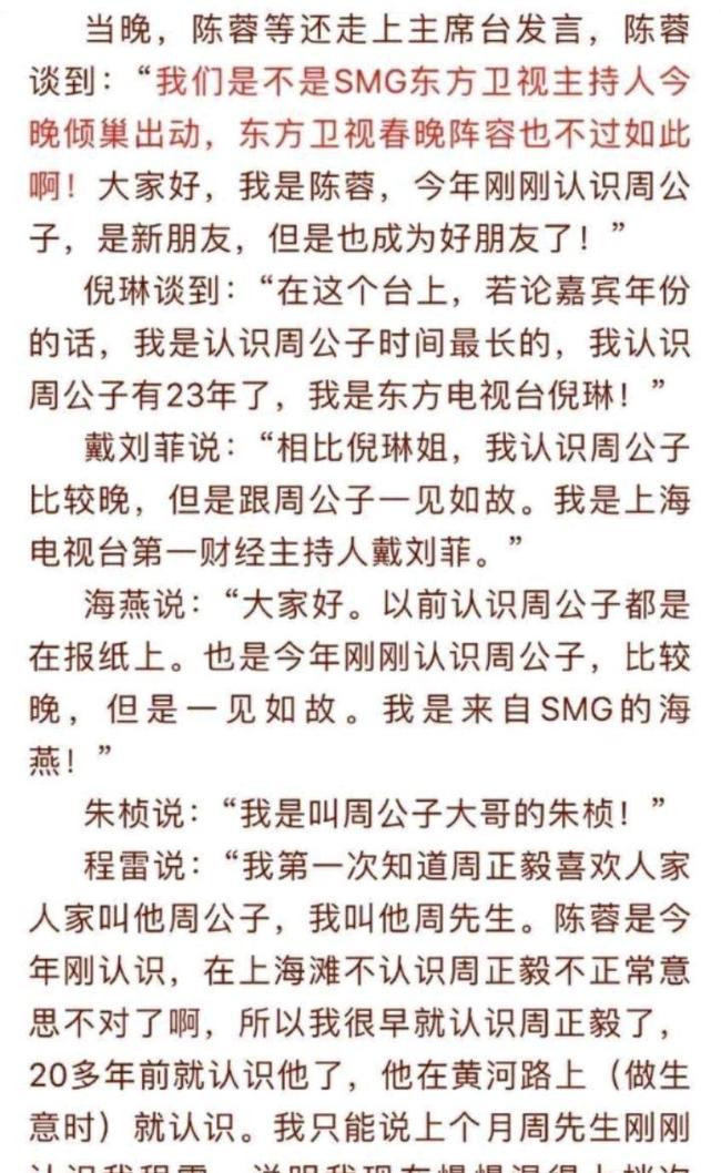 2021年4月,出狱刚七个月的周正毅在豪华酒店大摆宴席,上海知名主持人海燕、朱桢、程雷、陈蓉、倪琳高调赴宴。