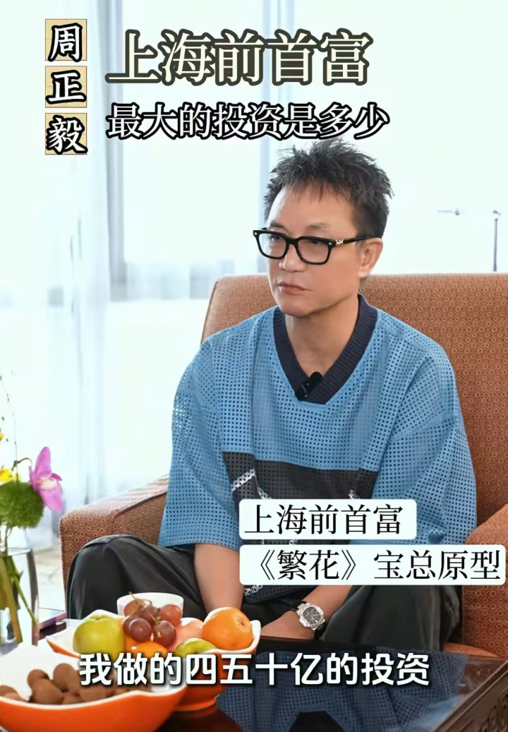 周正毅把自己称为《繁花》宝总原型,总是在视频里大谈特谈自己那“辉煌”的过去,甚至说自己曾经做过最大的一次投资是四五十亿。