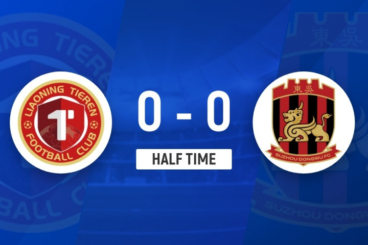 上半场比赛结束,辽宁铁人0-0苏州东吴。