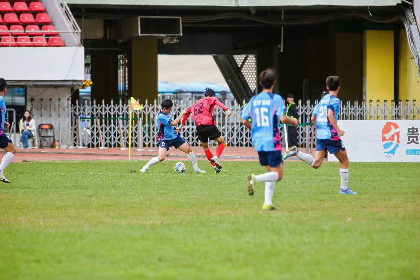 9月24日14时,2025贵阳城市足球邀请赛(简称“城超”)首场半决赛在贵阳奥体中心上演焦点对决。广西北海公仔饭店足球队与山西太原市足球代表队经过90分钟的激烈鏖战,北海队在下半场最后阶段连入两球,以2:0的比分战胜对手,率先锁定一个决赛席位。