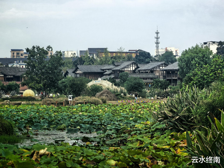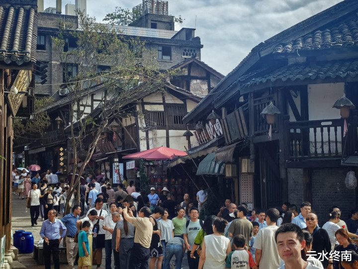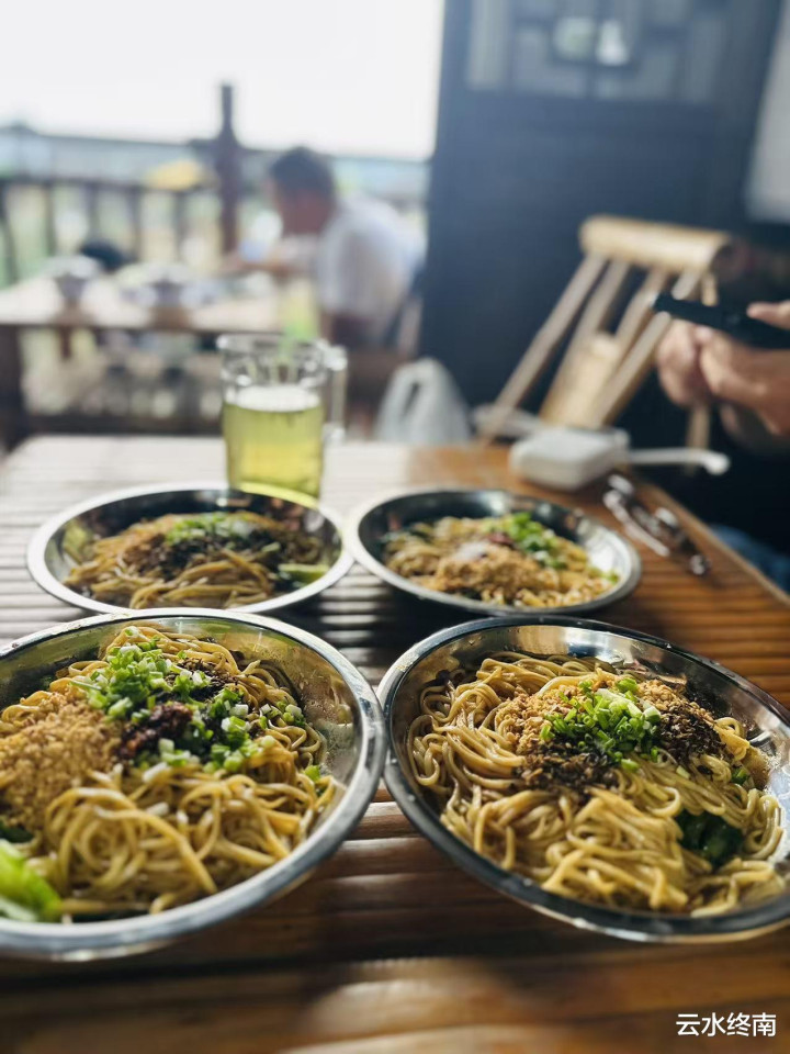 在月亮田景区看看走了也快一万步了,歇下来,点份宜宾燃面,喝杯清茶,看看这盛世繁华。