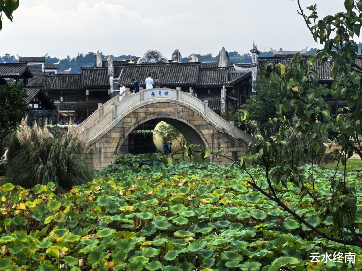 这是一个人工打造的景区,依水成街,以街为市,街桥相连,漫步其中,仿若穿越时空,走进了千年前的诗画江南。