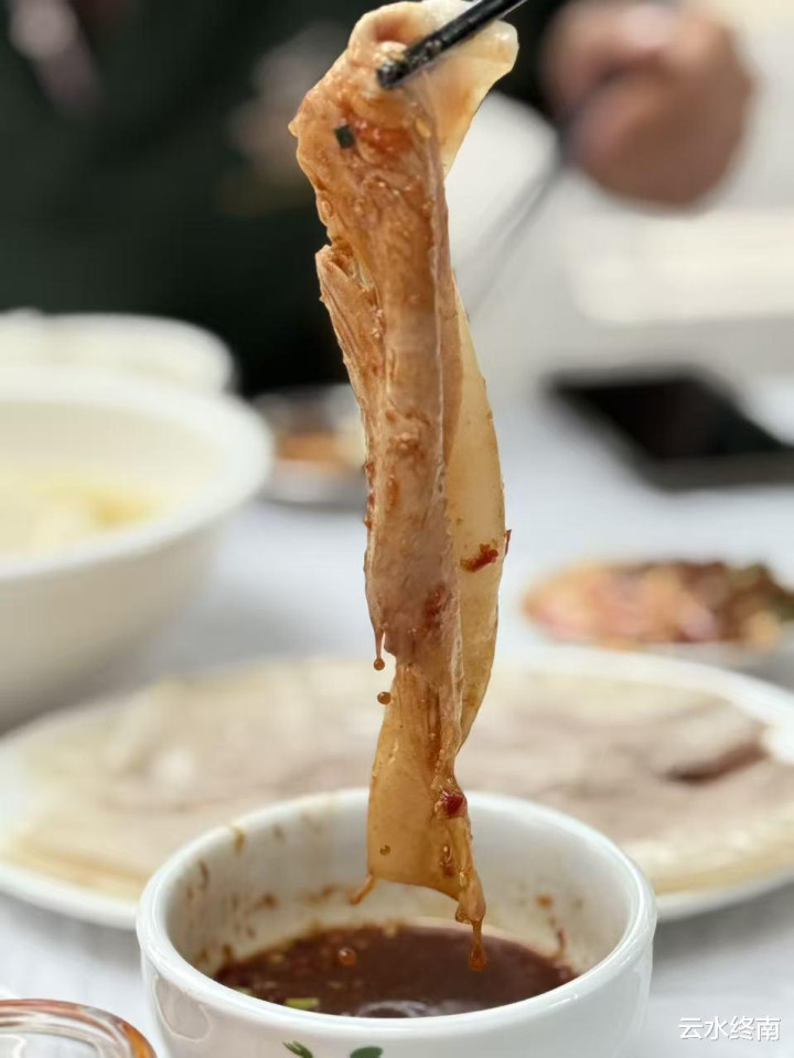 欣赏了一下大师傅片肉的功夫,看看薄如蝉翼的肉片在风中摇曳,口水又流下来了,可惜肚子饱饱。