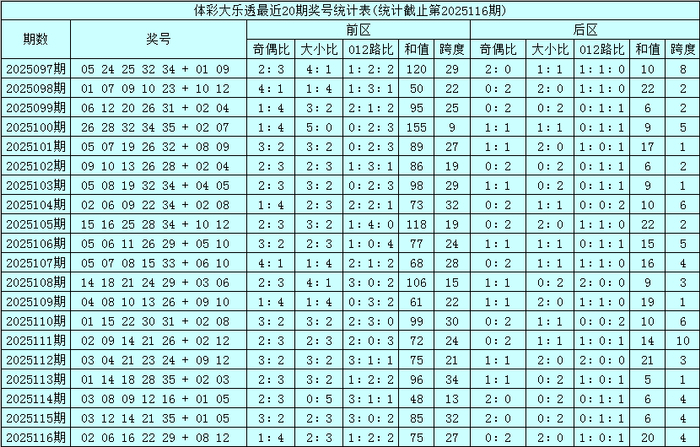 大乐透第2025116期开奖号码为:02、06、16、22、29+08、12。其中前区奖号奇偶比为1:4,大小比为2:3,和值为75,跨度为27,后区奖号奇偶比为0:2,大小比为2:0。